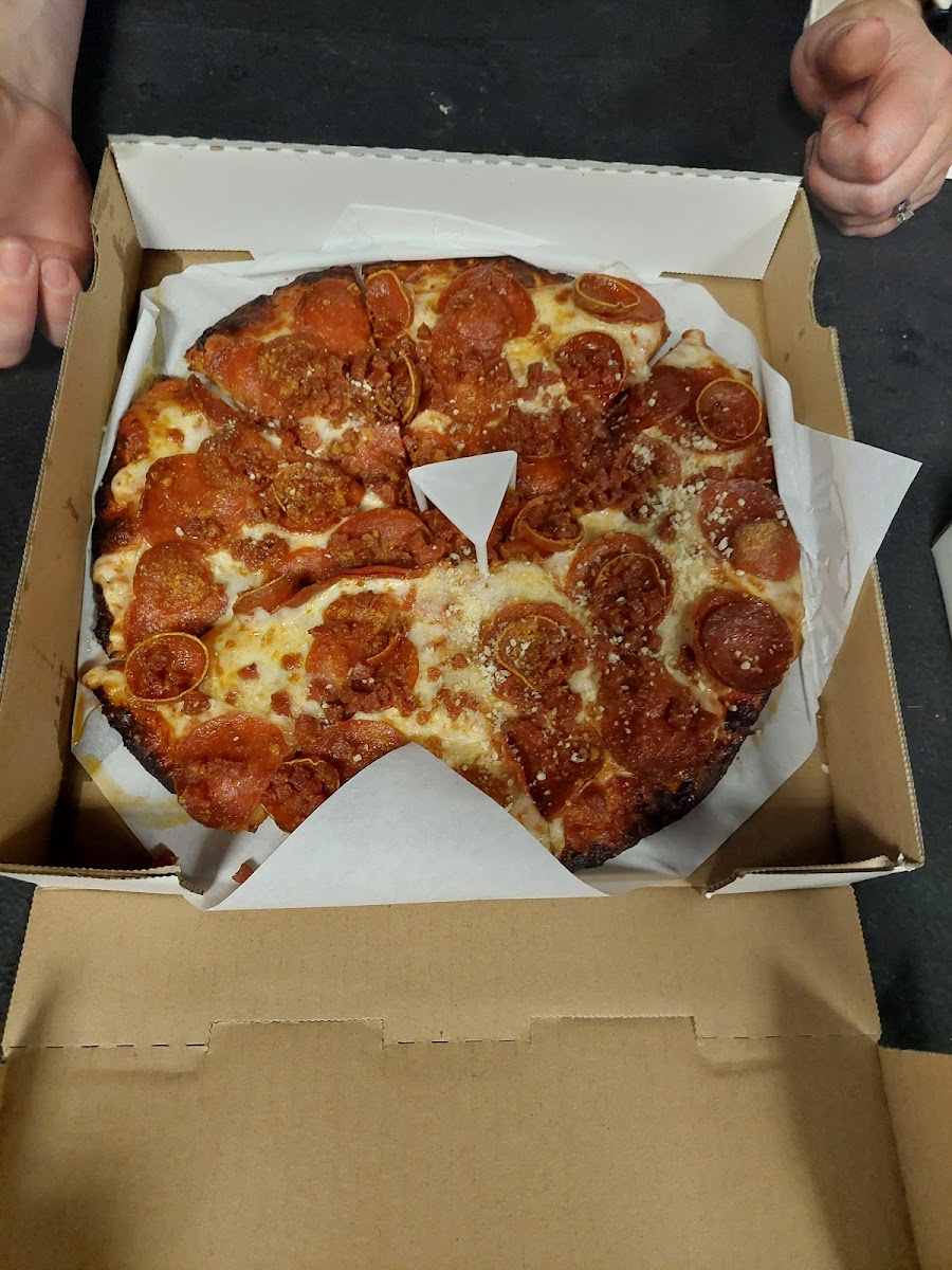 Half and Half Pepperoni and Combo Pizza with Garlic Parm Wings